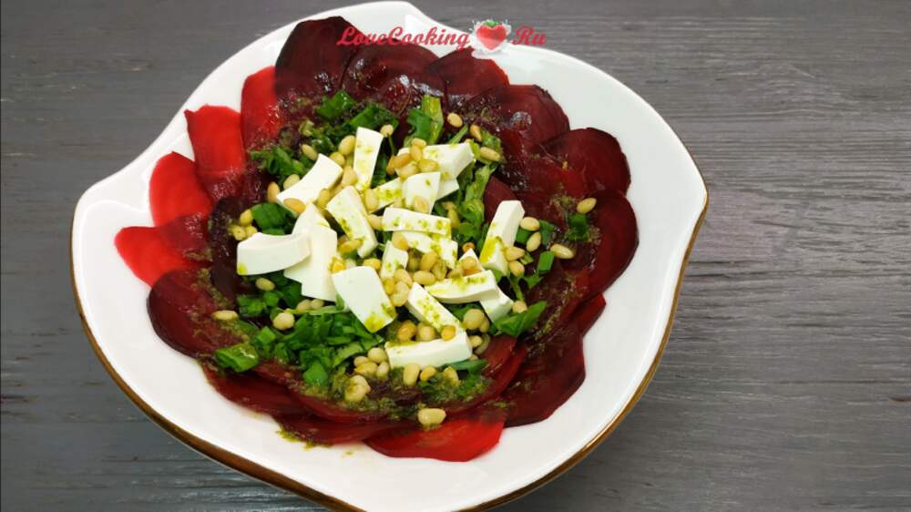Я, как любитель свёклы, перепробовала много разных блюд из неё. Но этот свекольный салат меня покорил. Лёгкая сладость печёной свёклы отлично дополняется соленоватым сыром, ароматными кедровыми орешками и пряным лимонно-базиликовым соусом. Вкусно, полезно, просто.